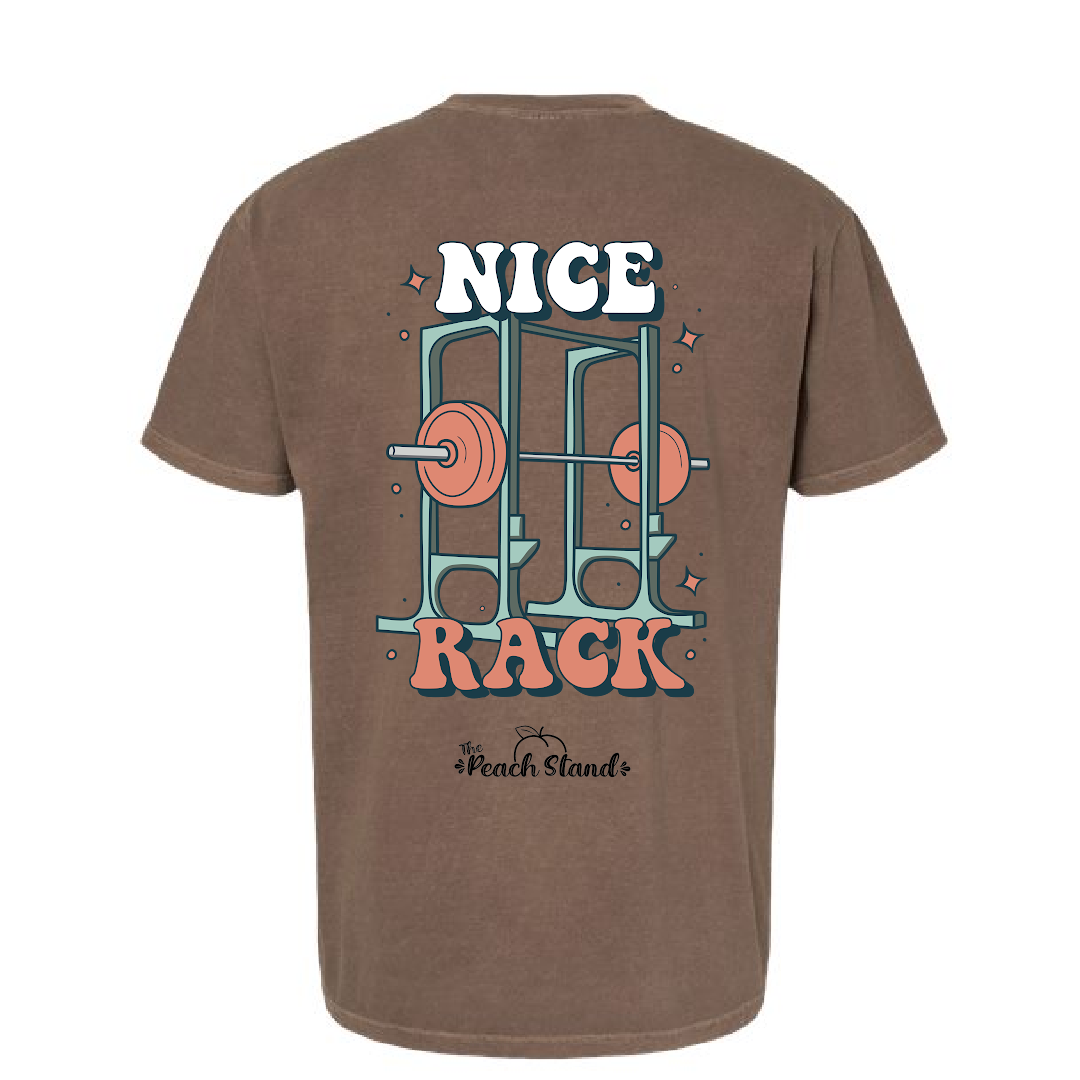 Unleash your inner risk-taker with our Nice Rack Tee! Whether you're about to take on a new PR, or have the hardest leg day of your life, take on new challenges and conquer them with this motivational tee. All designs are printed on extra-soft Comfort Colors Heavyweight Tees for lasting softness and comfort.